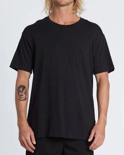 Bringing more substance to your staple t-shirt, the Mesa is made from a solid slub knit and cut with a premium fit. The solid pocket tee top is finished with a side seam woven label and garment wash for a soft feel. Men’s solid t-shirt. Jacquard slub knit. Pocket at chest. Garment wash with softener. Short sleeves. Flag label at side seam. Premium fit. Fabric: blended jersey knit.60% Cotton, 40% Polyester / Mens Shirt Mesa Slub in Black / Small / Cotton/ Polyester / Billabong