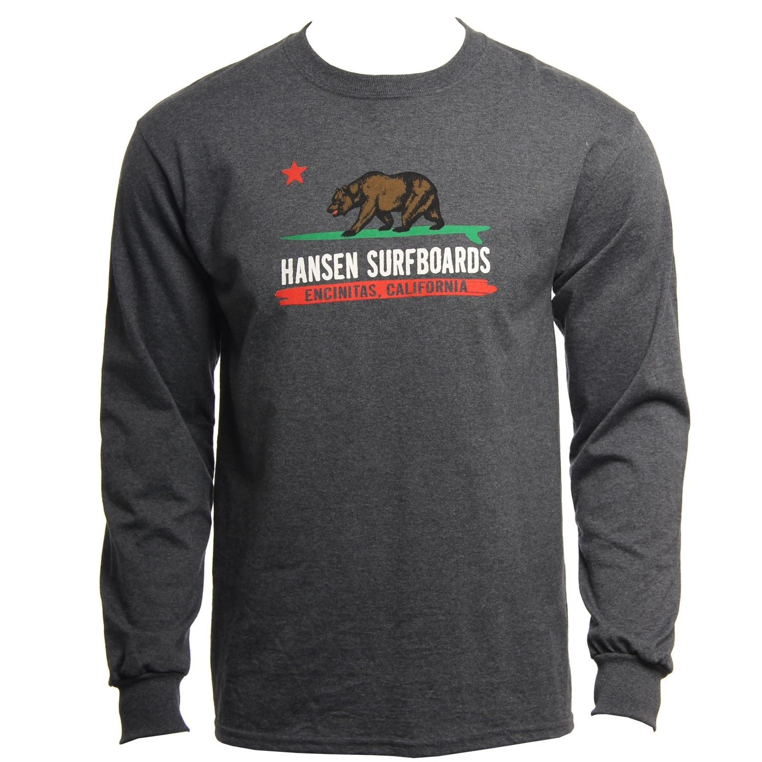 The Cal Flag is a Regular Fit Long Sleeve tee with a Front Screenprint design and is Made from a Cotton/ Polyester blend. / Mens Long Sleeve Shirt Cal Flag in Charcoal / Small / Cotton/ Polyester / Hansen