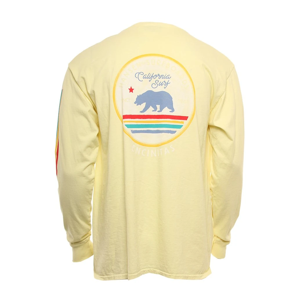 The Hansens Holier is a comfortable regular fitting long sleeve shirt. Front and Back California Bear Graphic and sequenced strip down left arm. Made from a 100% cotton. / Mens Shirt Holier Ls in Pineapple / Small / 100% Cotton / Hansen